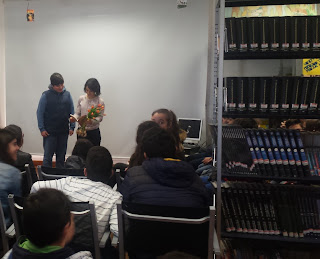 No âmbito do festival literário de Guimarães, Húmus e da Semana da Leitura Concelhia, a ilustradora Anabela Dias esteve hoje na E B 2,3, numa sessão para as turmas de 6º ano, em que abordou o seu percurso, técnicas, fontes de inspiração, entre outros assuntos.