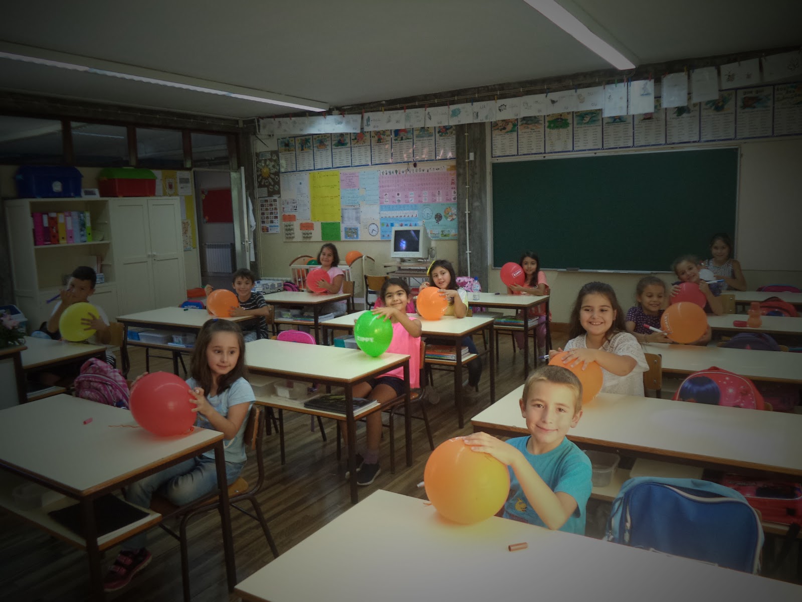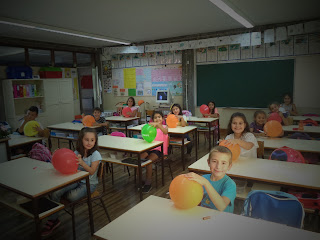 aula para que cada criança decorasse a seu gosto um balão oferecido pela